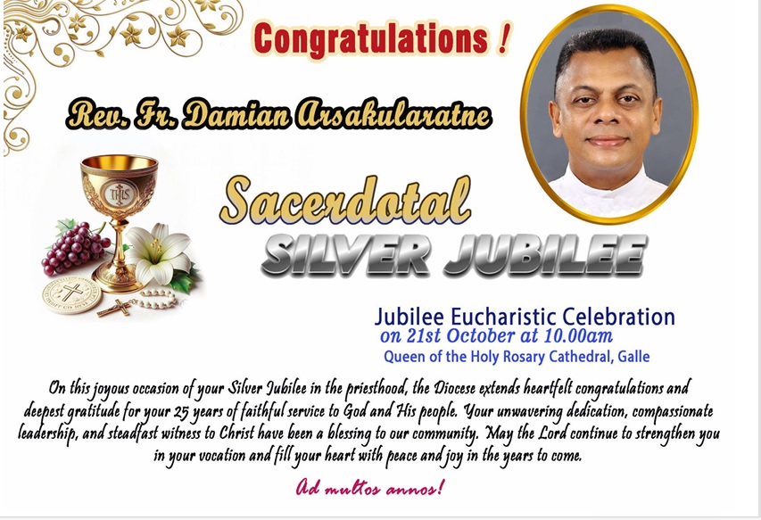 Sacerdotal Silver Jubilee of Rev. Fr. Damian Arsakularatne Date October 21, 2025 Time 8:30 am - 11:30 pm